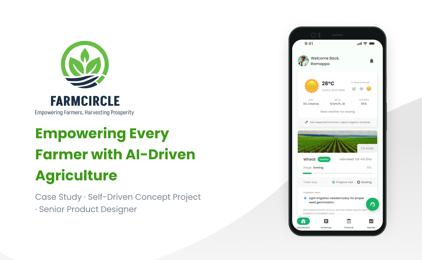 In India, smallholder farmers face chronic yield losses from pests and disease, realize only a fraction of the consumer price, and struggle to access formal credit and government welfare. FarmCircle is a mobile-first, voice-enabled platform that helps farmers move from guesswork to confident, insight-driven decisions—across crop planning, daily farm tasks, pest diagnostics, price discovery, market access, and agri-finance. Farmers increasingly own smartphones, yet many have low digital literacy and patchy connectivity; FarmCircle is designed to work offline-first with local-language voice so semi-literate users can succeed.